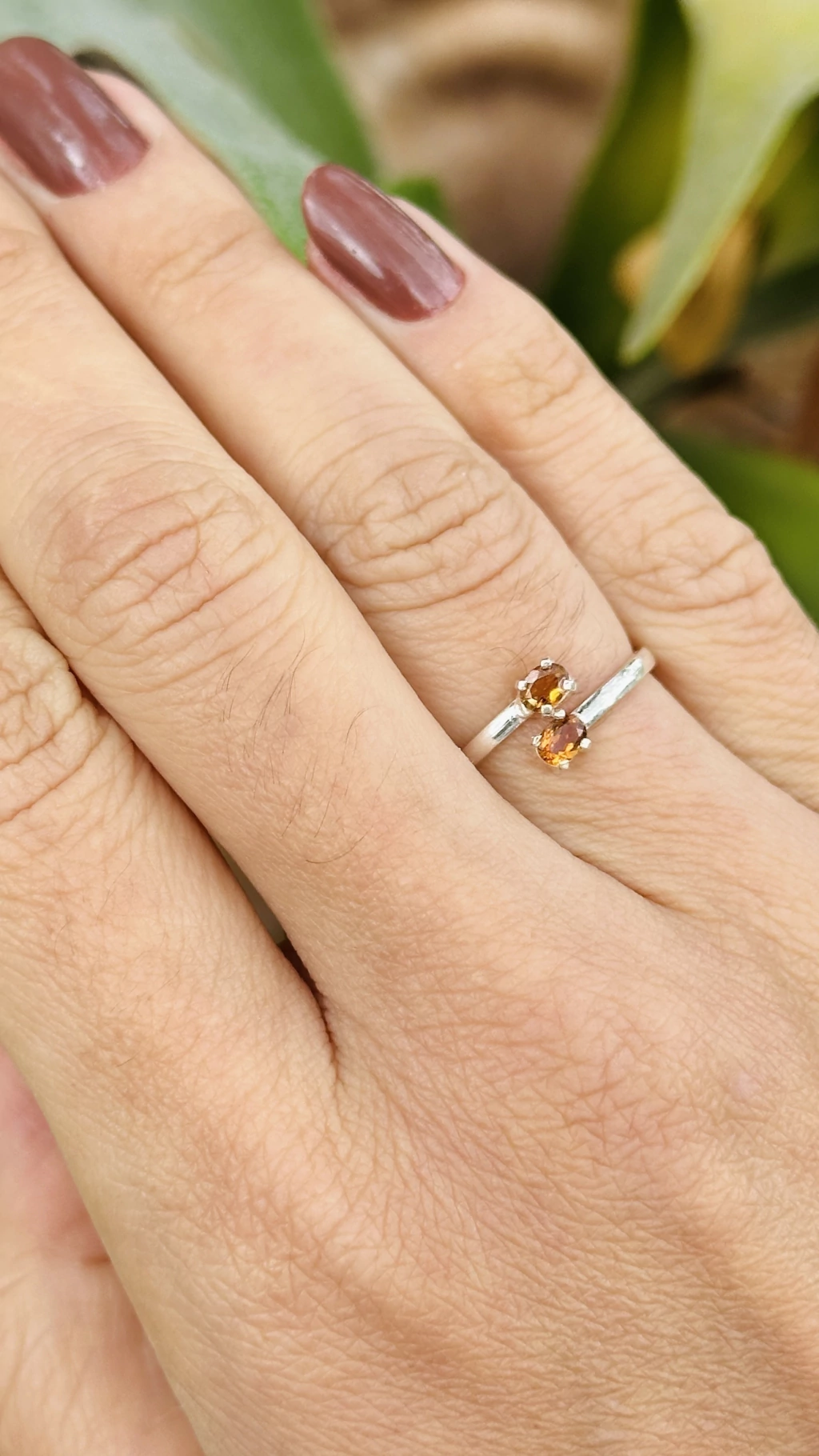 Anel em prata 925 ajustável do 13 ao 20, com duas turmalinas laranja naturais de 3mm